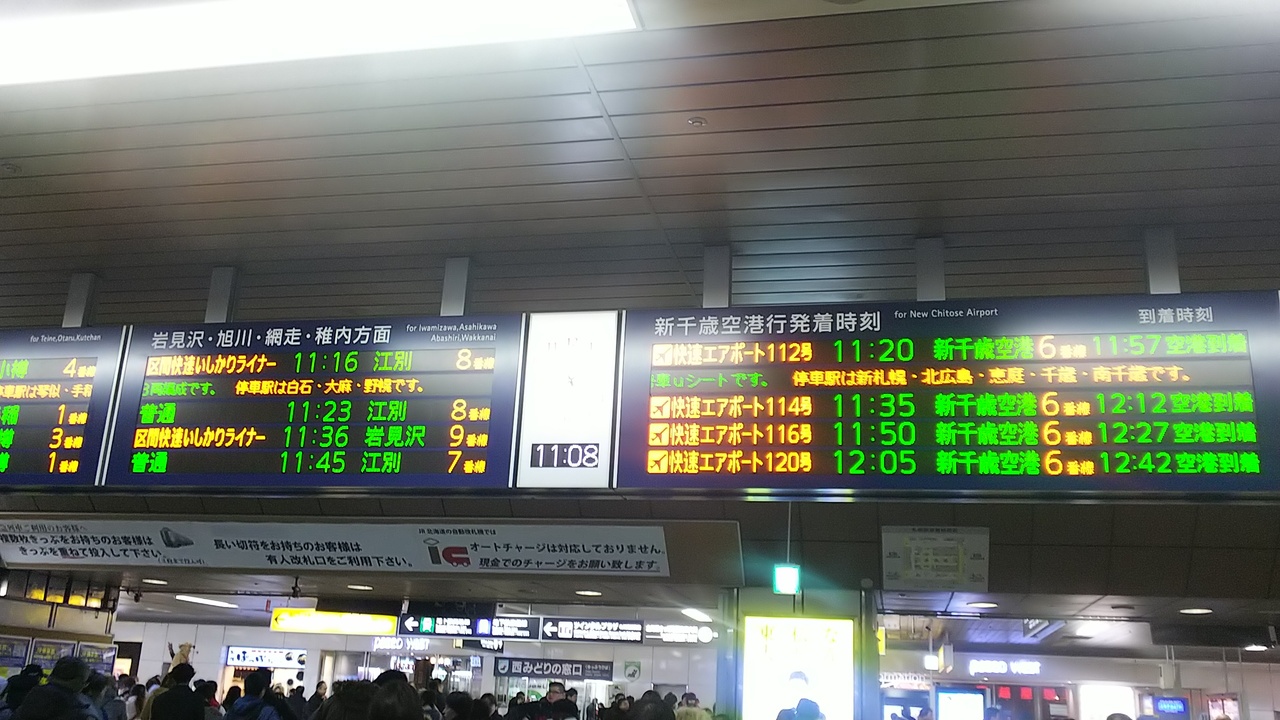 とても巨大な札幌駅で何度も来ても行きたい所に行けない。標示が分かりにくいのもあるかもしれない。いつも思います。観光客の為の地図や方向標示は外部者が作った方がいあですよ。東京駅より大きいだろうか、何でも揃う近代的なスーパーステーションです。