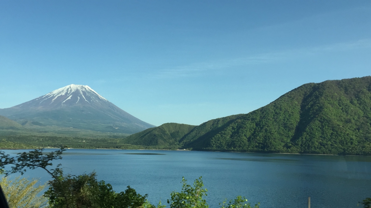 富士山五合目→山中湖→河口湖→本栖湖と訪問しました。本栖湖もなかなか大きな湖ですが、娯楽施設はキャンプ場くらいなので景観を楽しむ場所のようです。湖の奥にこぶりの富士山が見えて、山中湖や河口湖とはまた違った富士山の景色を楽しむことができます。三方五湖のように波打ち際が道路に近く、波が穏やかなのが印象的でした。