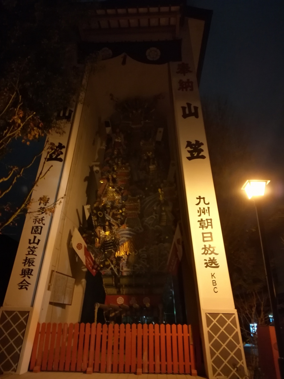 たまたま人の流れる方に歩いて行ったら博多祇園山笠で有名な神社に着きました。キャナリーシティからすぐ近くでした。夜だったので肝心の山笠が暗くてよく見えませんでした。それが心残りです。全体的に暗かったですが、薄明かりは趣がありました。私以外でも夜に訪れる人がいました。
