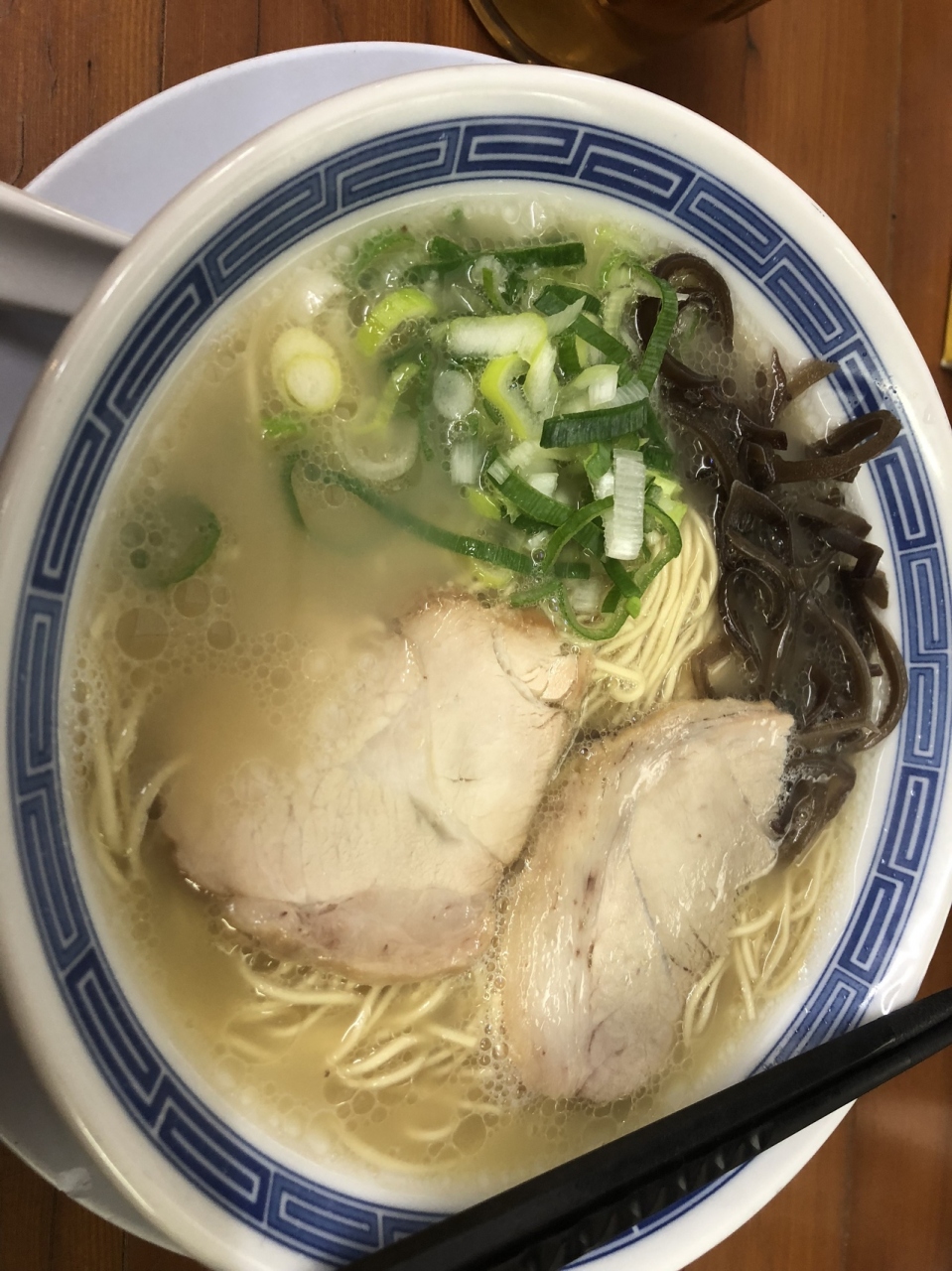 味は長浜系のあっさり豚骨で、そこまで塩気は強くありません。
