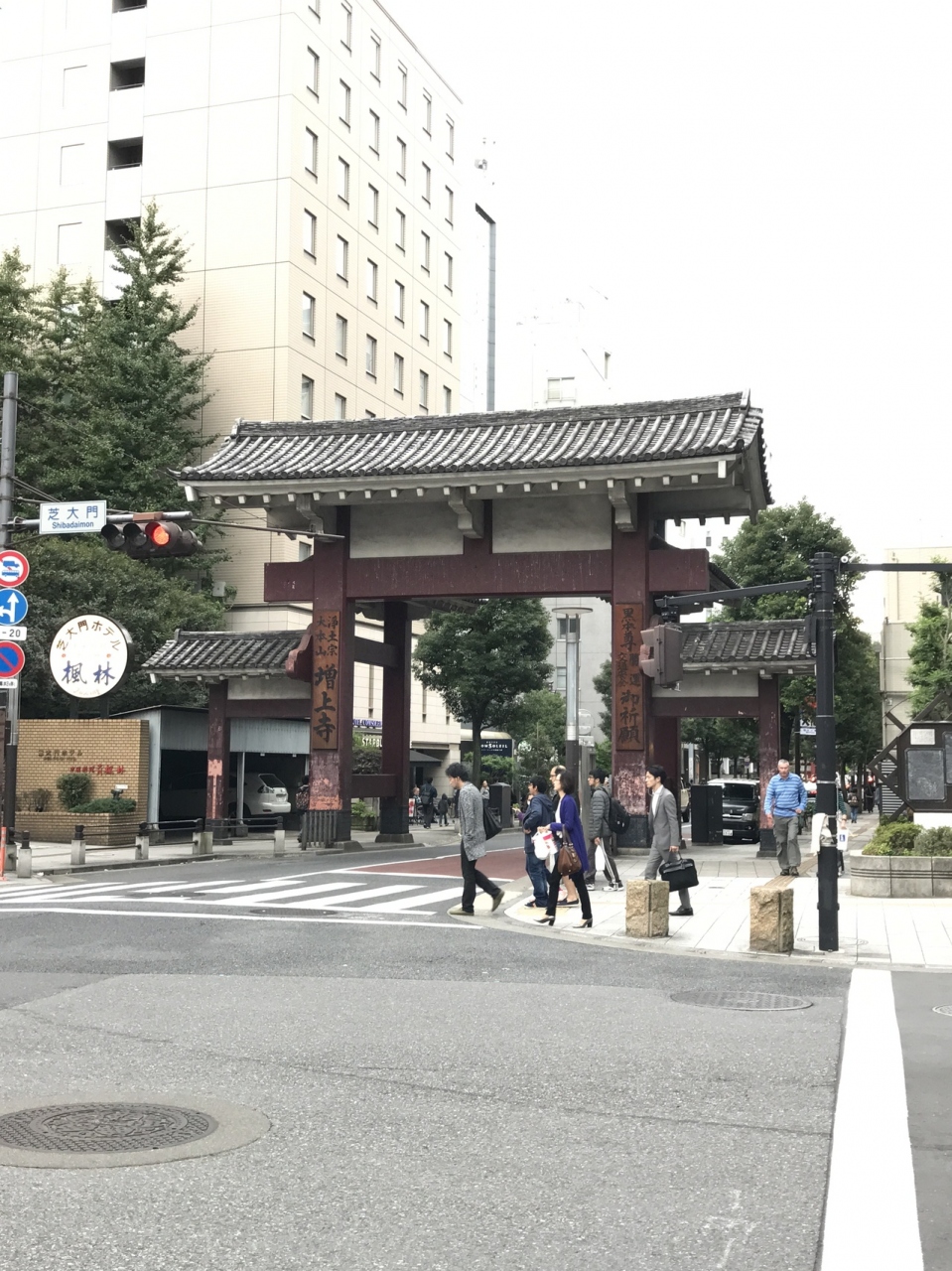 2016年10月に、増上寺に行ってきました。都会のど真ん中に増上寺の門がみえてきます!これを目印に進んでいくと、奥に増上寺があります。