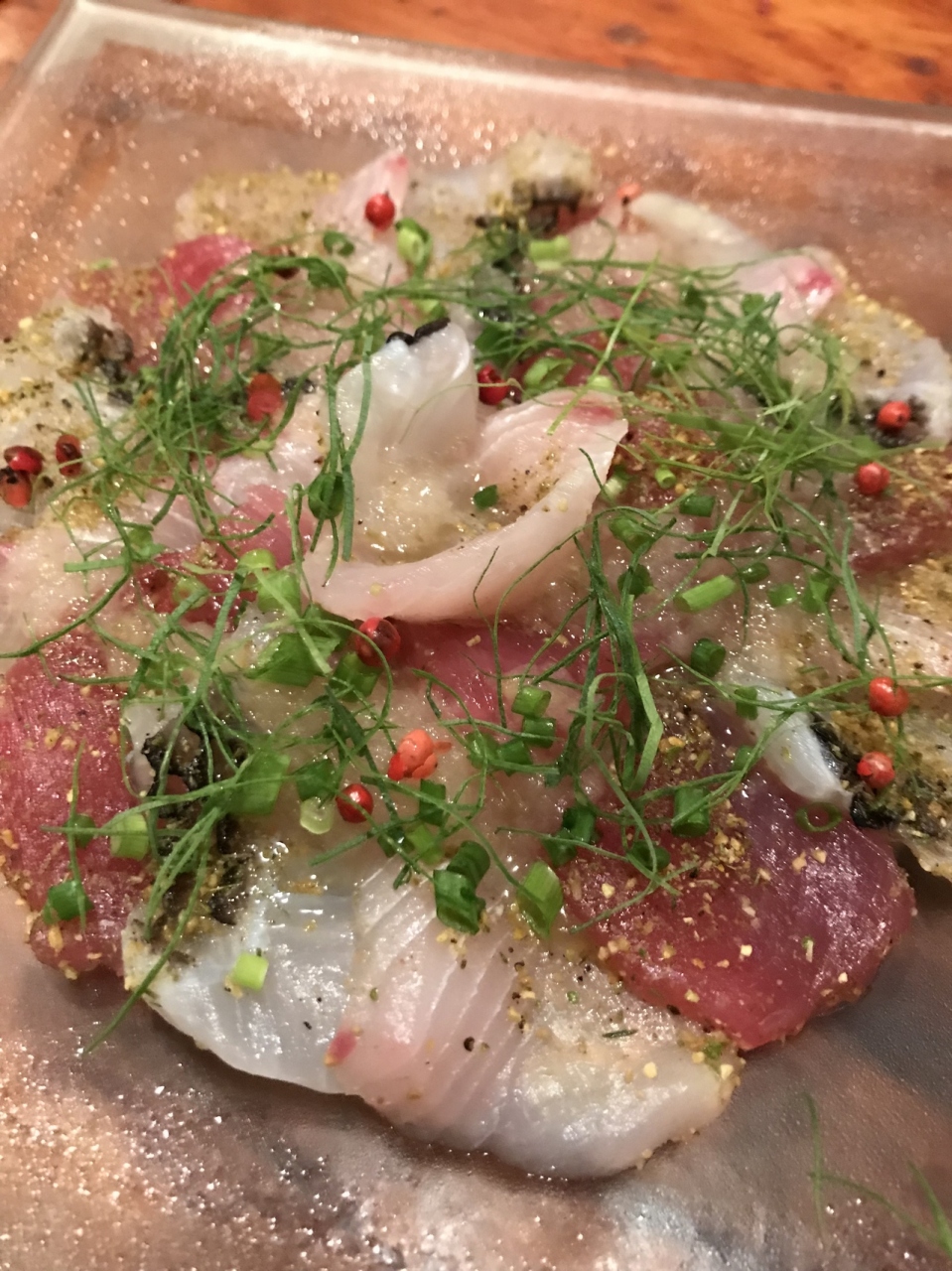 島魚のカルパッチョ、お鍋は絶品でした。2時間近くゆったりとお食事出来ました。