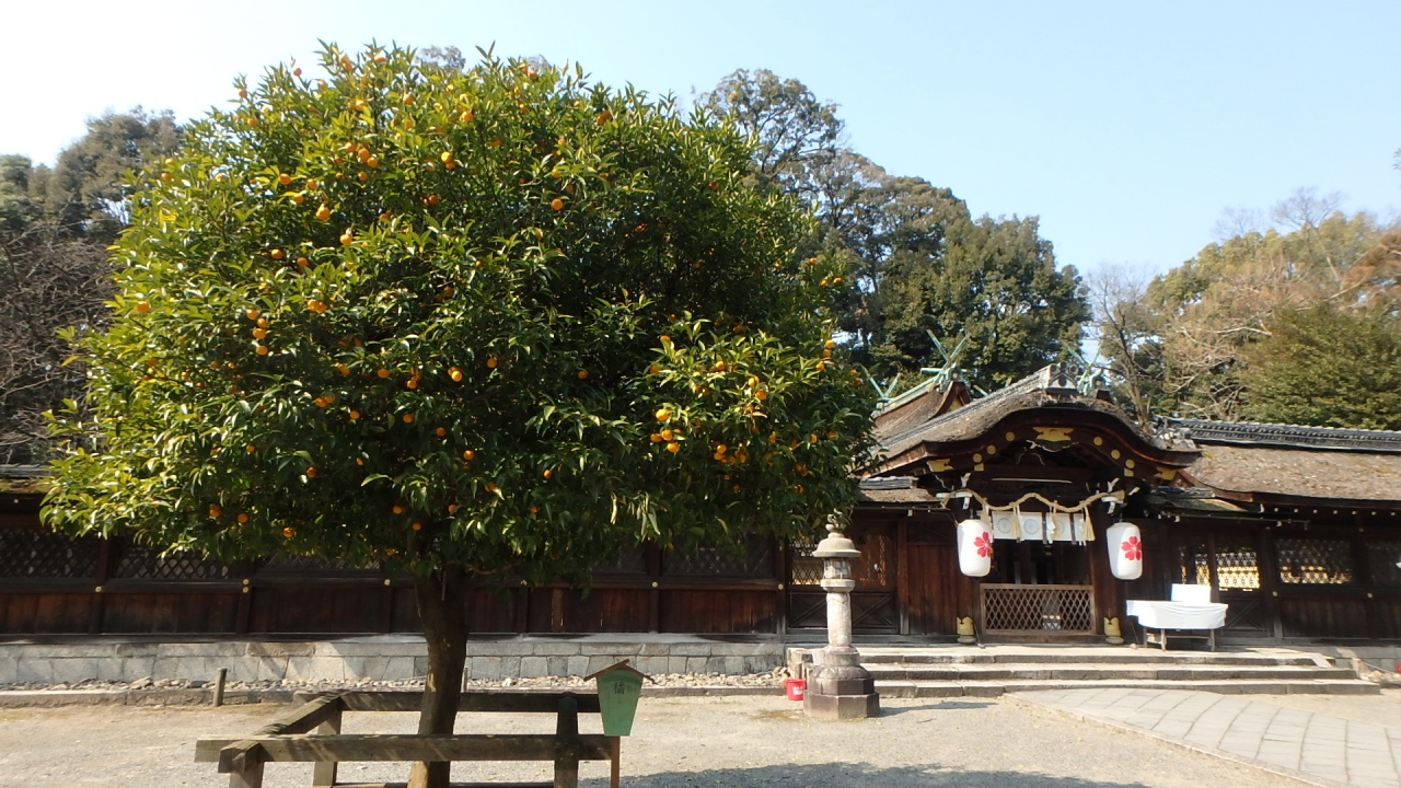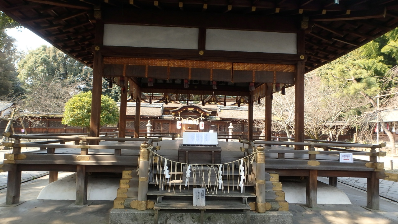 平成30年9月14日の台風21号により、拝殿の倒壊、本殿の檜皮葺屋根の損傷、桜の数十本の倒木など甚大な被害を受け、毎月、「サクラサク コンサート」などの復興事業が行われているとのことです。