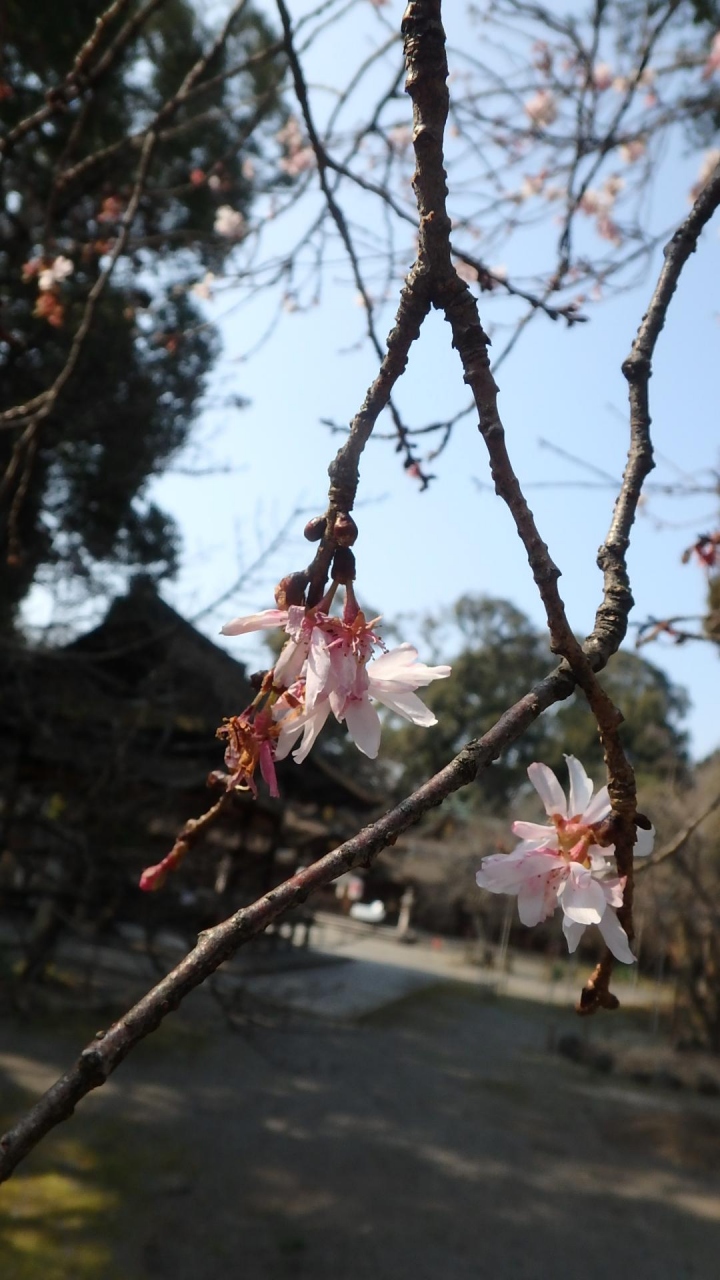 北野天満宮の梅を観賞したのち、北の門から出てすぐのところにありましたが、梅の季節と桜の季節はずれているため、冬桜以外の花は眺めることができませんでした。