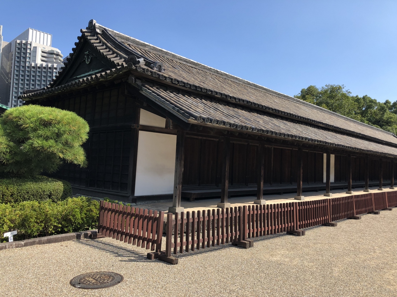皇居東御苑にある番所の一つで、最も大きいものになります。正門の大手門から入ると、すぐに同心番所があり、その近くに百人番所があります。同心番所とは比べ物にならないくらい大きく横長の建物でした。その名の通り100人の警備役の人達が待機してました。