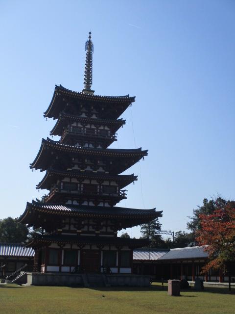 国宝の東塔と向かい合う位置にあります。ただ、現在東塔が工事中なので、西塔が寂しそうです。三重の塔なのですが、各層が双子のように、裳階を付けているため、六重の塔のように見える珍しい構造です。色も鮮やかですし、窓も美しいです。
