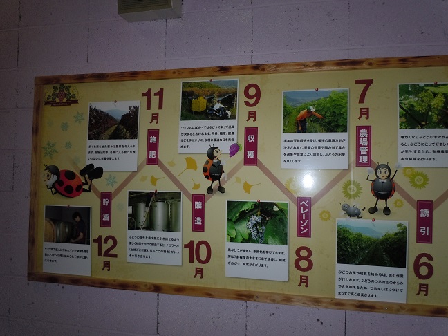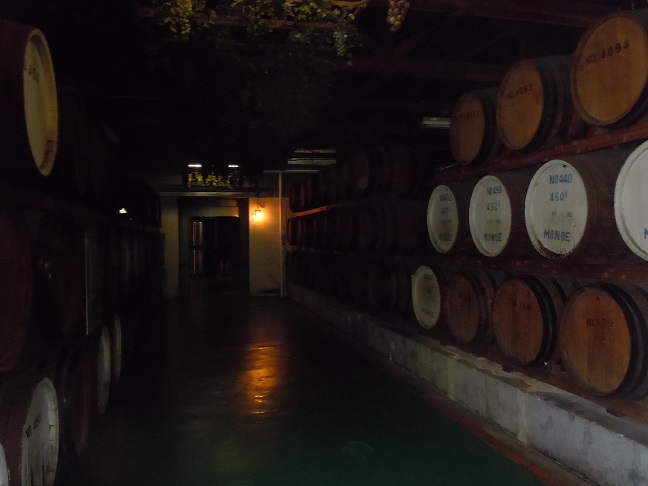 工場への通路には年間の行程が展示されており、並べられている樽の群れが壮観でした。