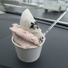 オーダーしたアイスクリームは、季節限定の小倉とクッキークリームのカップ。
