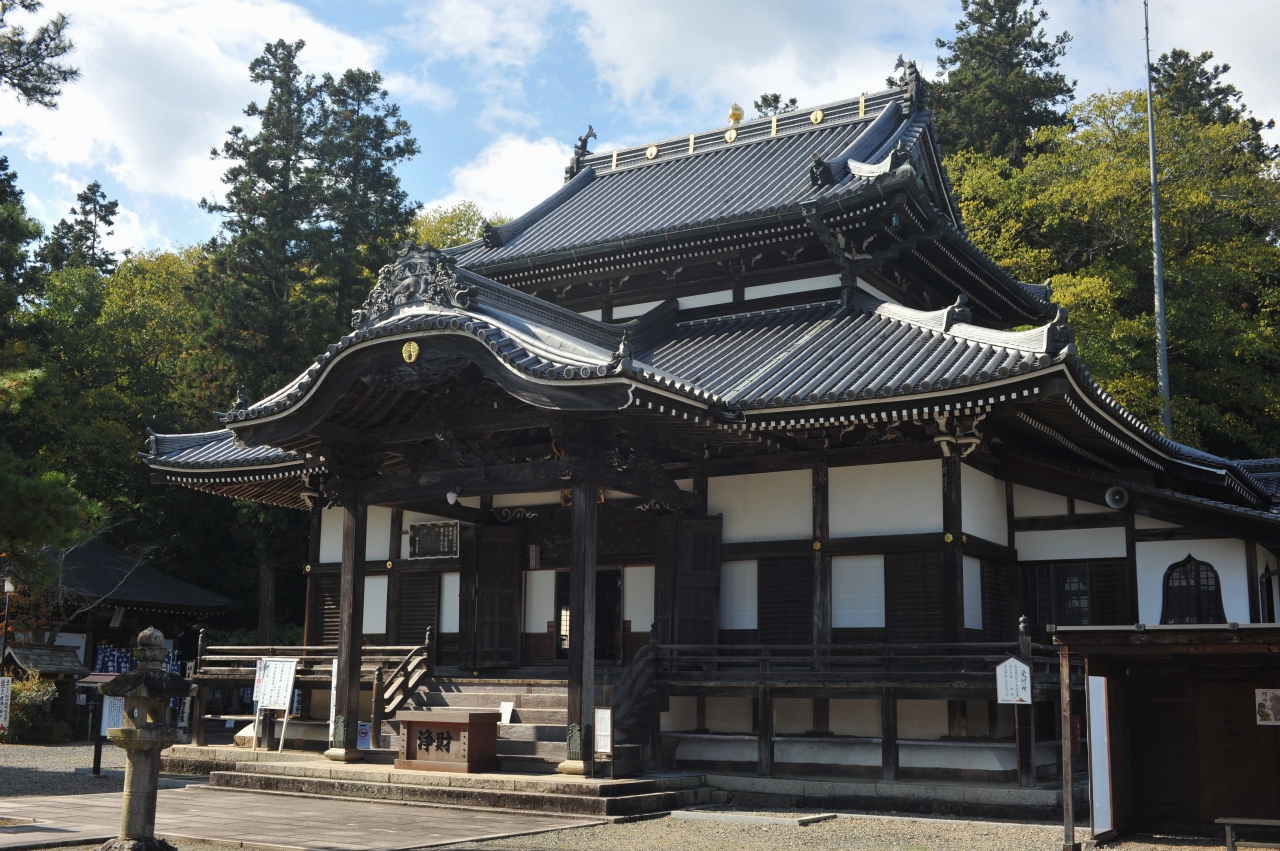 法然上人ゆかりの寺だ。上人が生まれたから「誕生」寺なのか。境内には上人が寺を旅立つ時の姿の像などが立っている。参拝したときは講習会などイベントが開かれておりバタバタしていたが、本来は落ち着いた寺だ。本殿から振り返ると、山門を経て門前の道路がはるか先まで見える。参道がひたすらまっすぐだからだ。また、何といっても境内のイチョウの木。黄落の時季だったが、見事な枝ぶりと鮮やかな黄葉が記憶に残った。