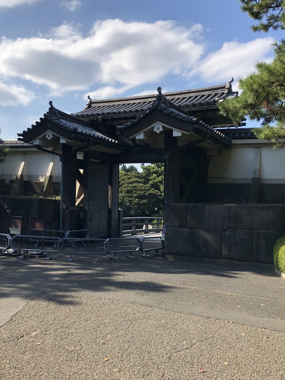 皇居東御苑の3つの門のうちの一つで、北の丸公園や東京国立近代美術館側からの入口です。正門の大手門に比べるとほとんど人がいませんでしたが、ここから入ると本丸の天守閣跡がすぐです。門の周囲は静かな雰囲気でした。