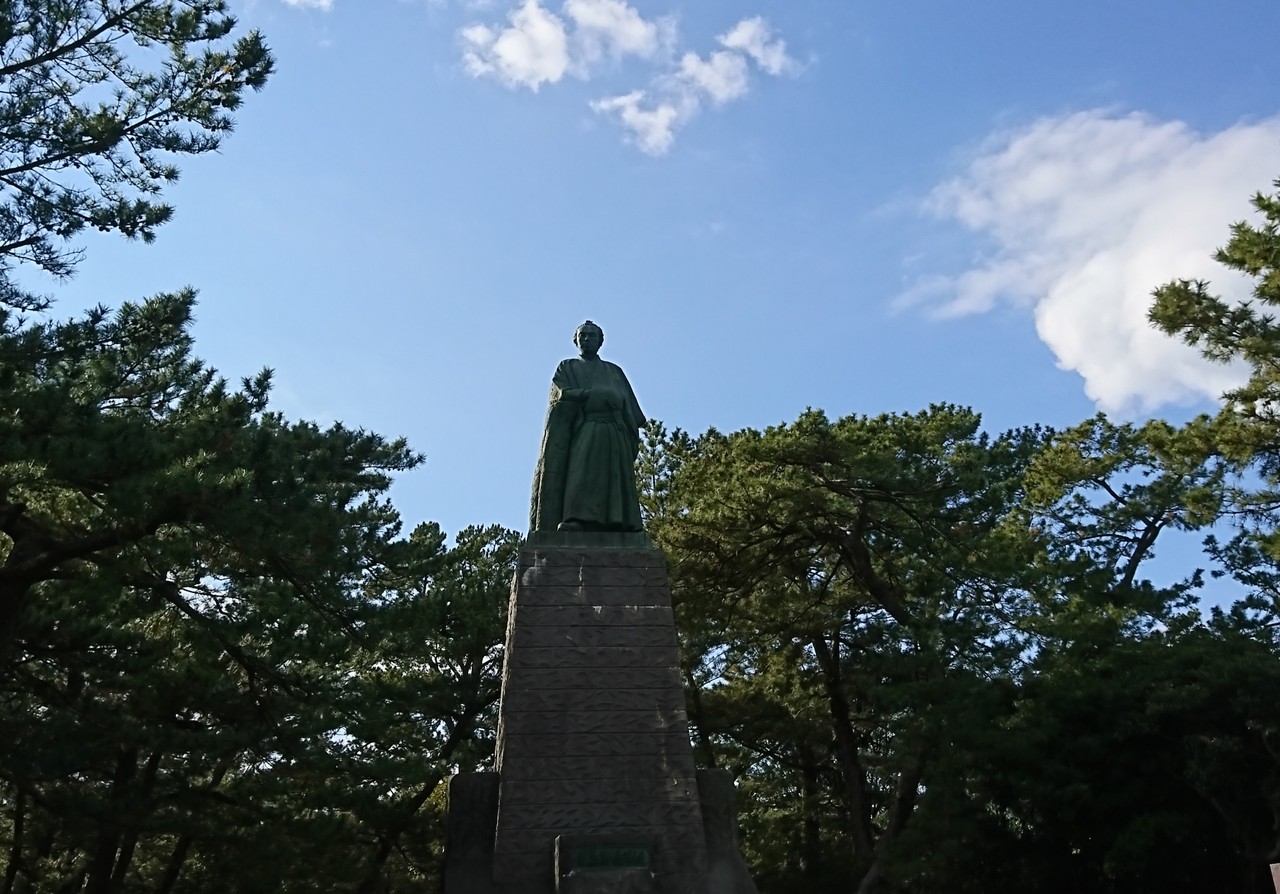 高知の人気観光スポット桂浜にそびえ立つ立派な坂本龍馬銅像です、想像よりもかなりの大きさで記念撮影をされている方が多い場所です、台座がかなりの大きさなので撮影する場合は少し引いて撮った方が人も坂本龍馬銅像も上手くフレームに入ると思います、桂浜とともに幕末の歴史好きには興味深い場所だと思います。