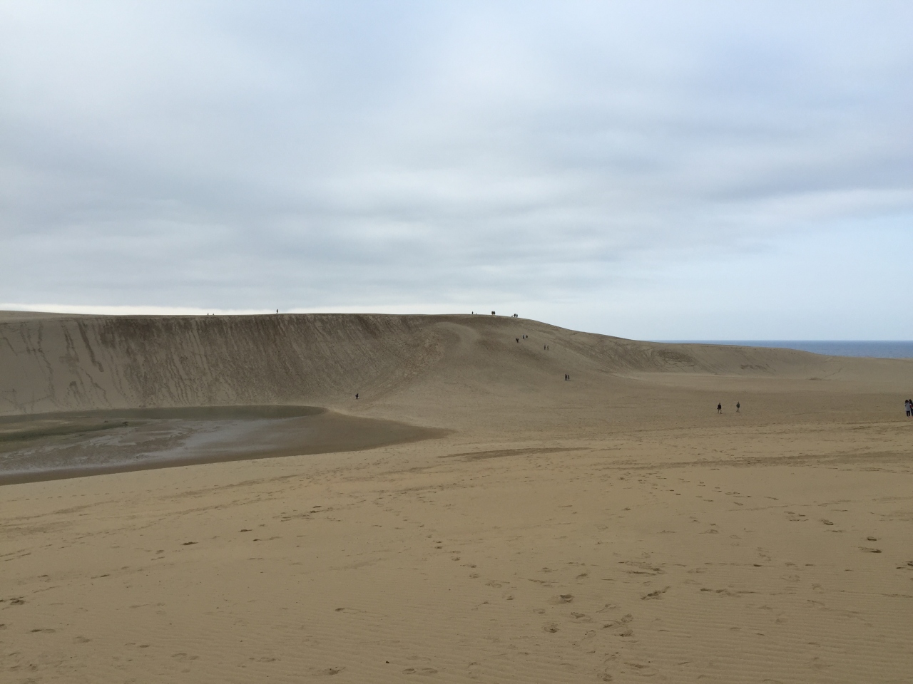 一面の砂。珍しい光景にテンションが上がります。天気が悪かったからか潮風なのか、砂が湿っているのが気になります。わざわざフタコブラクダまで用意して、観光に力が入っているのが伝わります。砂丘は結構高低差があって、上から下に駆け降りると楽しかったです。2度目の訪問ですが、2回とも天気が悪くて残念。