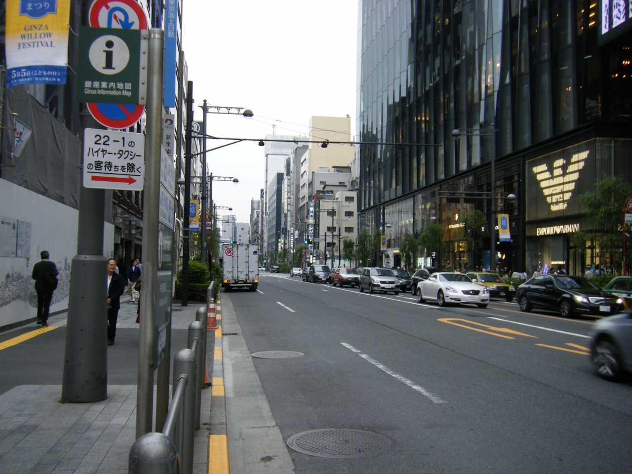 有楽町駅の東側、首都高速沿いに通っている外堀通りが西銀座通りとも呼ばれています。非常に大きな通りで、車通りもとにかく多いです。通り沿いには無数の飲食店、雑貨屋、アンテナショップなどが立ち並び、非常に賑わいのある通りとなっており、歩いていて飽きない通りになっています。車通りが多いのでくれぐれも通行にはご注意ください。