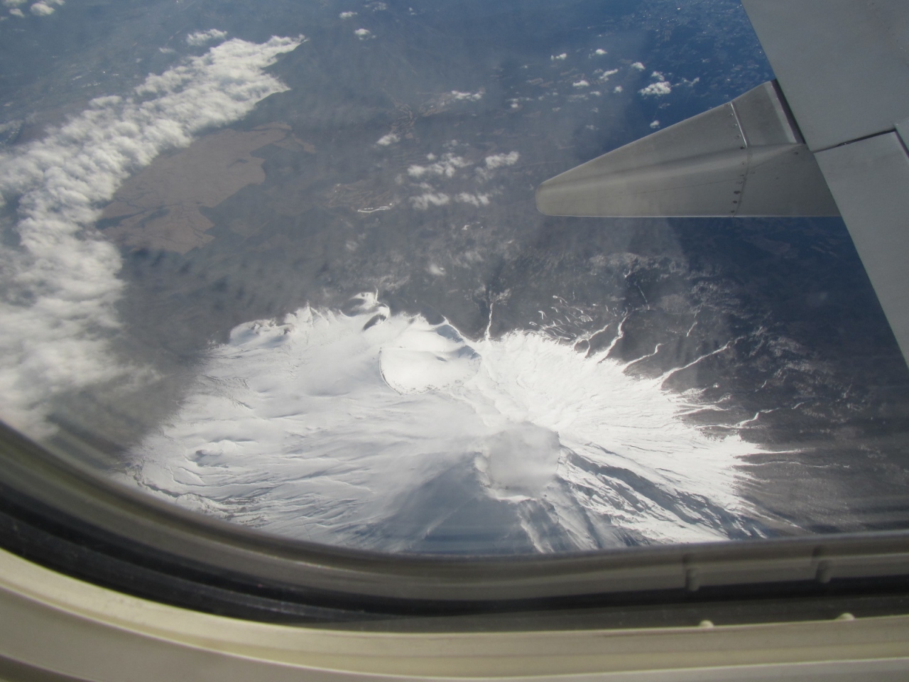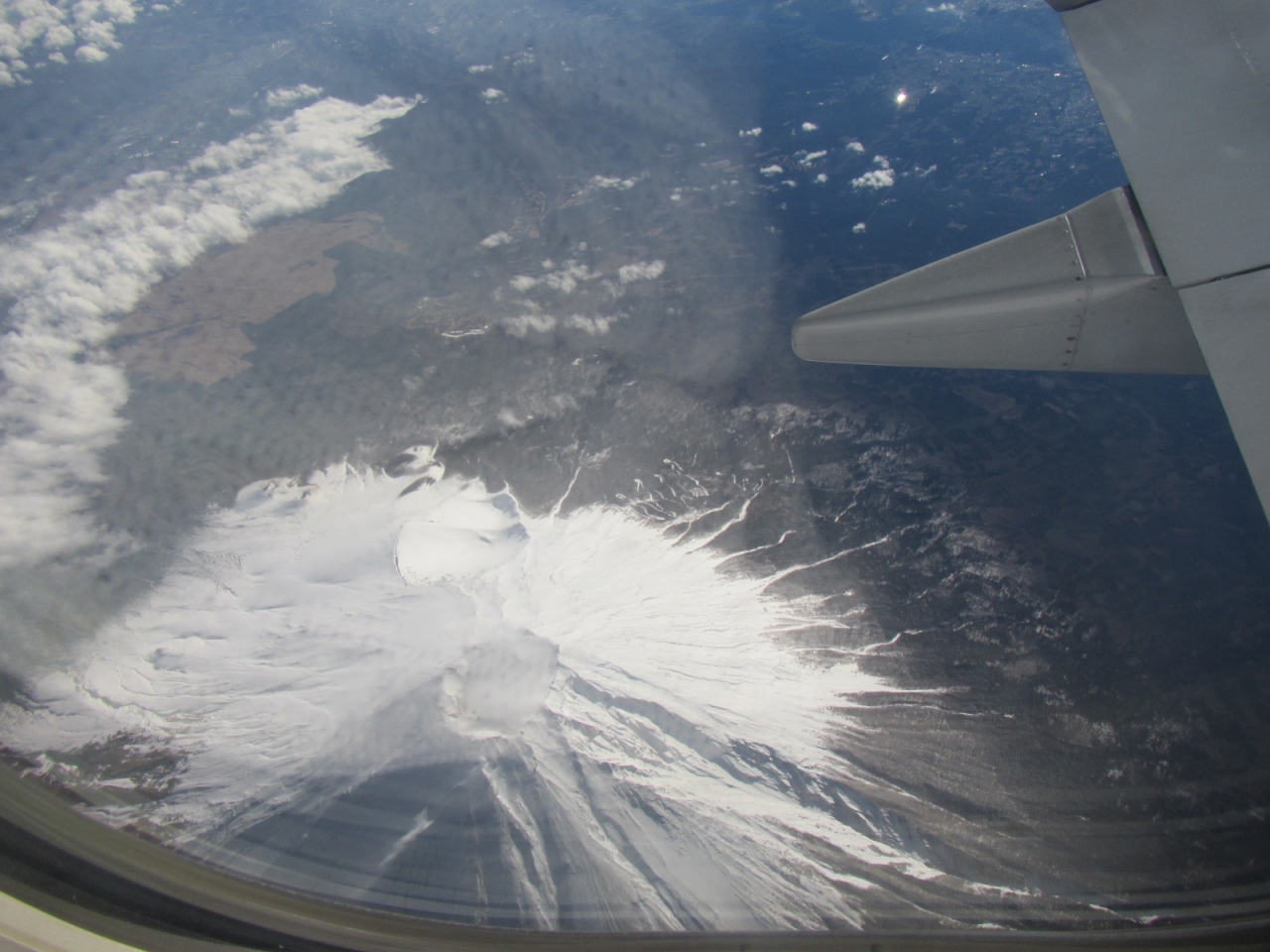今回の搭乗は、羽田―松山便でしたが、左側席窓側の直下に富士山が見えました。