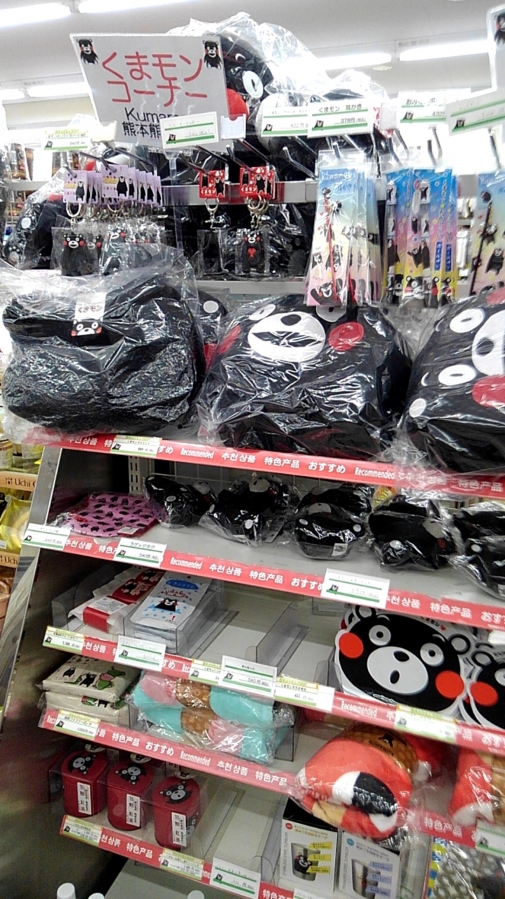 第1ターミナル、ANAカウンター側のマクドナルドさんの奥側にLAWSONがありました。小さなLAWSONですが空港内のコンビニなのでとても混んでいます。通路自体もとても狭いので大きな荷物を持ったお客さんとはすれ違うにも気を使わなければなりません。街中のLAWSONとは違い、くまモングッズなどお土産になるようなものがたくさんありました。こちらのLAWSONは24時間営業です。ちなみに反対側の南エリアにはファミリーマートがありました。