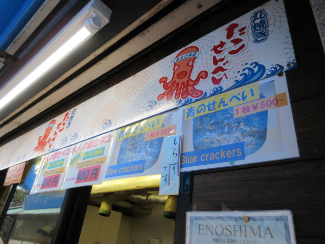 江ノ島の観光で訪問しました。場所は江の島の神社へ向かう参道商店街の途中です。とても有名なお店なので、店の前には行列ができています。自動販売機で商品を選んで並んで待ちました。15分くらいで自分の番に。その場で作ってくれるのであつあつのものがいただけました。大きいけど薄いからすぐ終わっちゃいました。おいしかった。