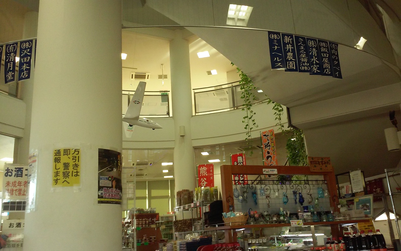 物産館とおみやげ物がある2階建のエリアから出来ています。物産館内は地元産の農産物が中心です。別棟2階には展望レストランと日本最初の女医の資料館があってエレベーターで上がれます。回りに大きな建物が無いので、赤城山や浅間山が見えます。