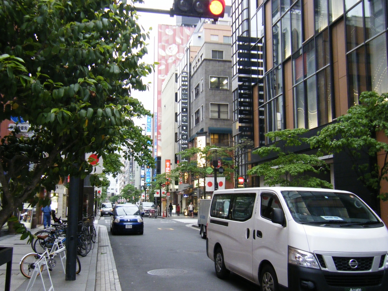 銀座中央通りの7丁目交差点で中央通りと交差するように作られている通りが花椿通りと名付けられています。沿道の一部には通りの名前にもなっている椿の木が植えられているようですが、どの木が椿なのかは私には判別できませんでした。飲食店やショップの数が多くて賑やかな印象を受けました。歩いていて楽しい通りですね。