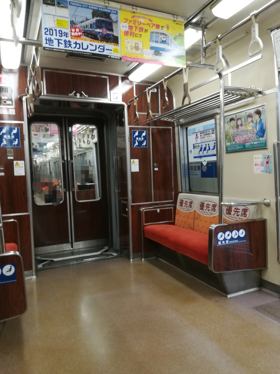 空港からのアクセスもわかりやすく、なんといっても博多駅まで約5分という近さが便利です。この立地を利用して福岡空港での国際線乗り換えを計画しました。短時間でも博多観光や博多ごはんを堪能できます。車内のドアや壁の一部が木目調のデザインなのも変わっていて良かったです。