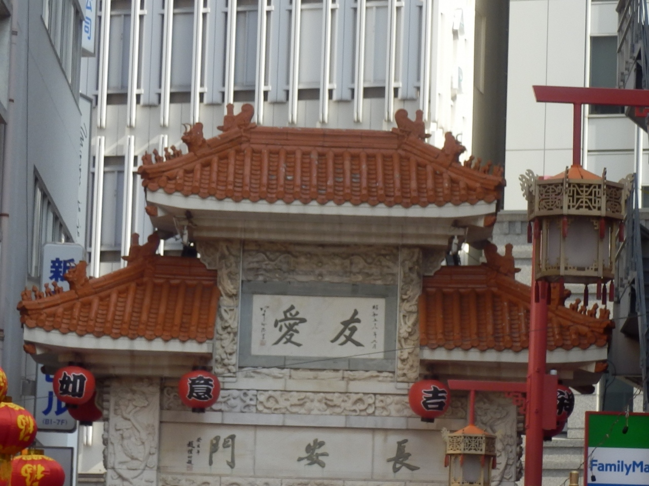 神戸の中華街に入る三つある門の一つ、神戸では中華街と呼ばないで南京町と呼んでいる長安門は南京町の東側入口建っ門のこと、門の上段中程に"友愛"と書かれた扁額が乗せられていた東入口の長安門に対して西入口にが西安門があり両門間両側に一直線の商店街が続いている門の飾りはもちろん商店街一体は派手な飾りで圧倒されそうですが中国の文化が垣間見れます