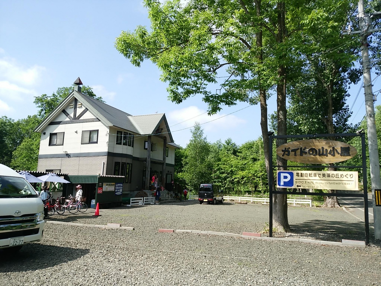 ホームページを見て、十勝岳ダウンヒルコースを予約しました。受付を済ませて吹上温泉まで車で送ってもらい、そこで試し乗りをして解散です。普段電動ママチャリには乗っていましたが、電動クロスバイクは初めてだったので、スタートしたては少し緊張しました。快適な乗り心地ですぐに慣れ、おかげでレンタカーなしの旅にもかかわらず、青い池や四季彩の丘も楽しむことができました。バッテリーも問題ありませんでした。