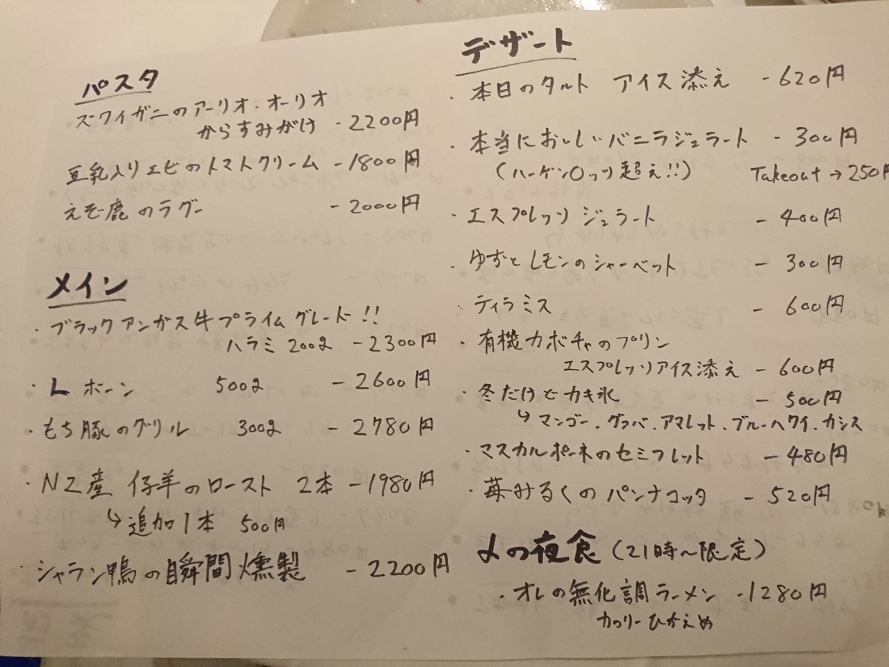 - ディナー