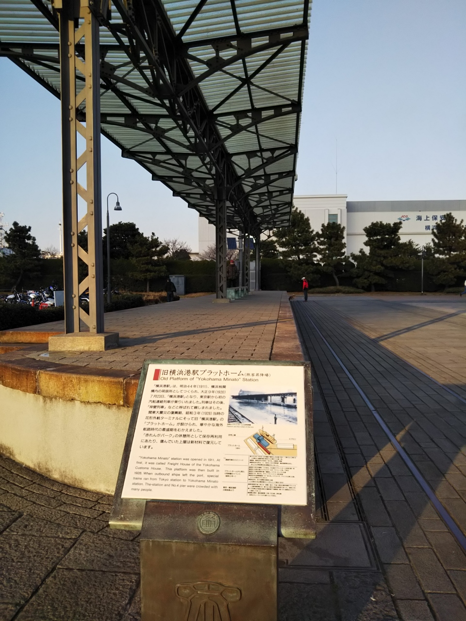 横浜赤れんが倉庫には、よくでかけますが、この場所は初めてでした。今は、港の近くですにありますが、明治時代には、横浜港駅でした。現在では、プラットホームと線路が残っています。現在では、近くに座る休憩所もあります。