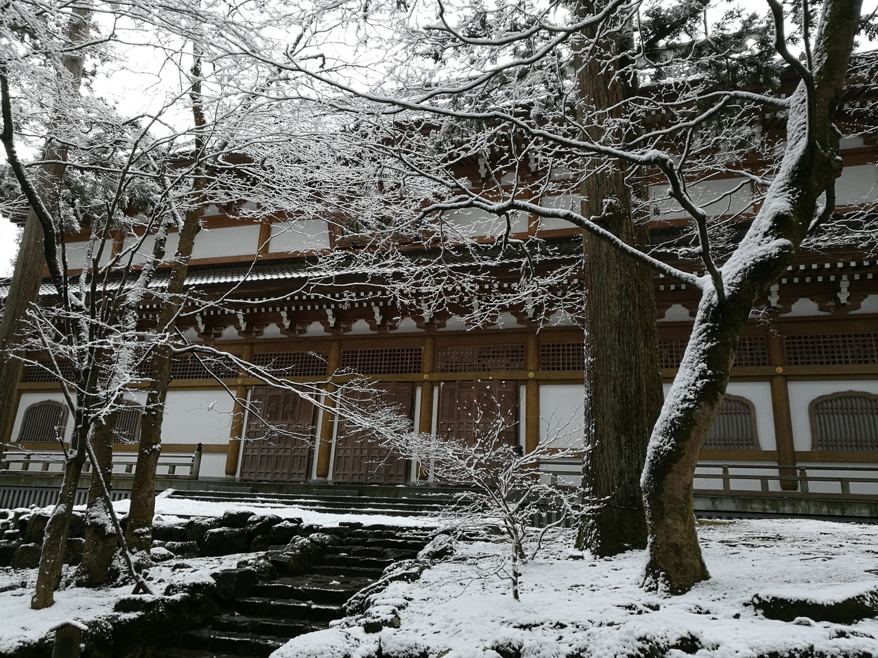 福井駅から永平寺ライナーで一本で行くことが出来ます。かなりの雪が降っていて寒かったのですが、永平寺の雪化粧はとても趣があって荘厳な雰囲気がより際立っていました。