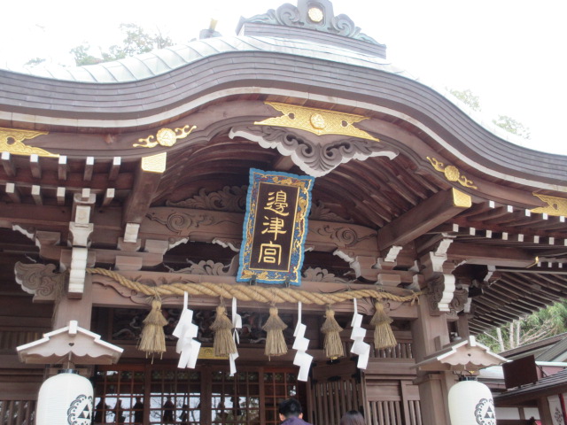江ノ島の観光で江島神社を参拝しました。その神社の境内にある建物で、島を入って鳥居や門を抜けた最初に現れる大きな建物です。階段があるので少し大変ですが、一番参拝しやすい場所ですので、参拝客も多いです。「下の宮」とも言われて珍しい形のさい銭箱が有名です。