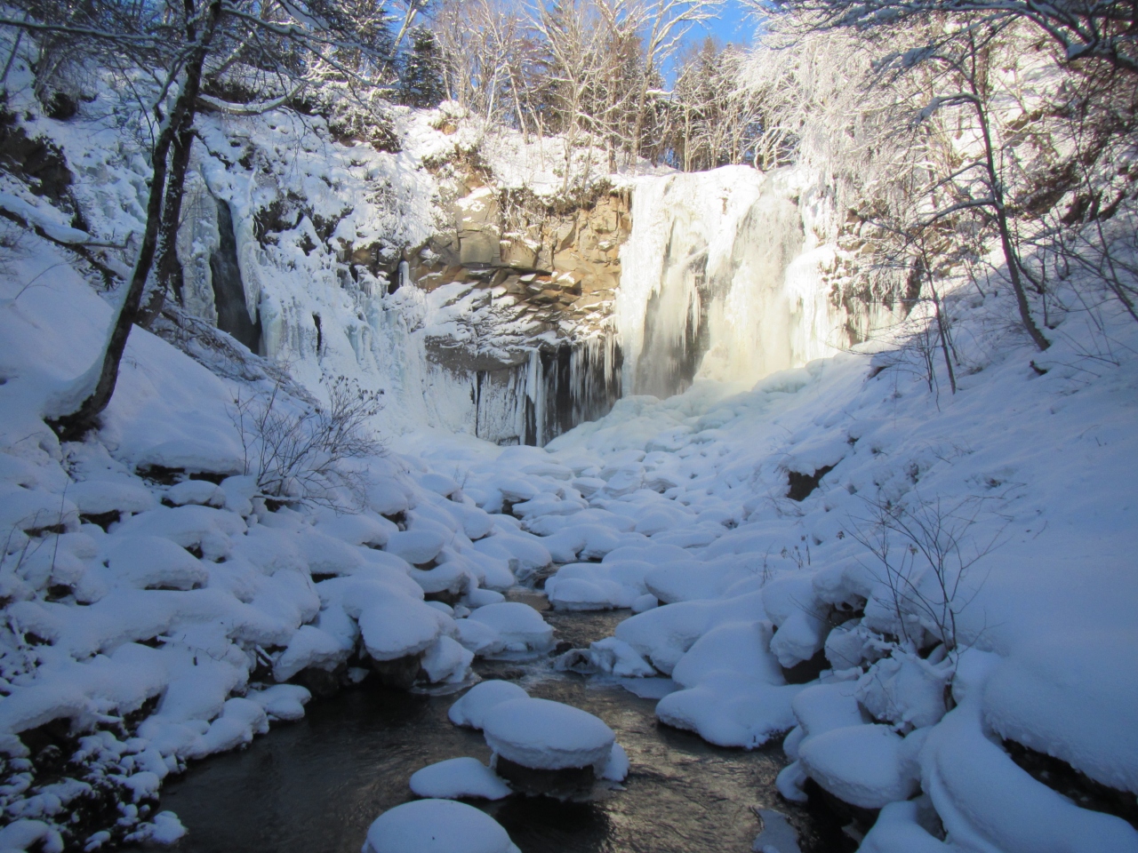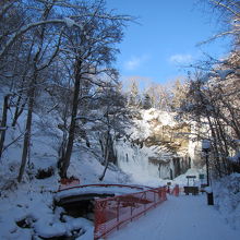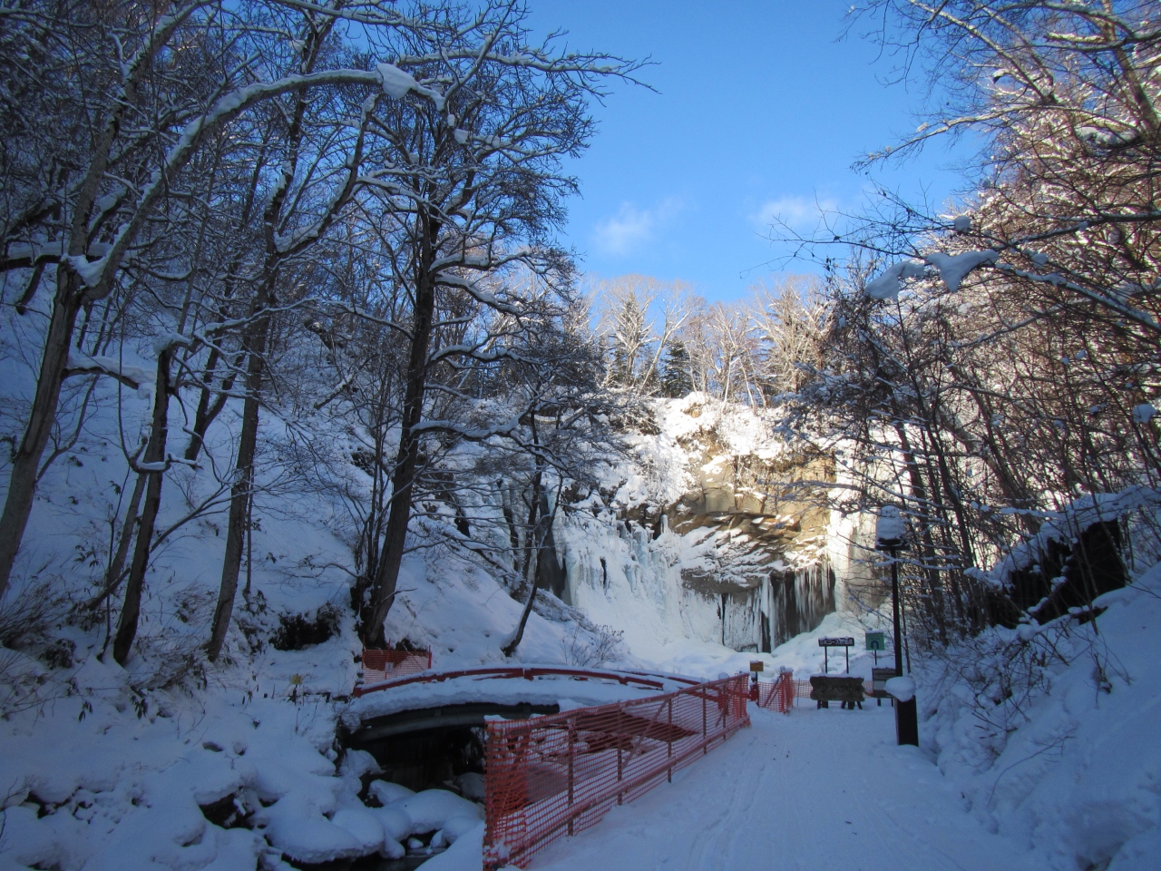 そのため、スキー、スノーシューどころか、スノーブーツですら大げさで、普通の冬靴で十分に滝の前まで歩いて行けます。