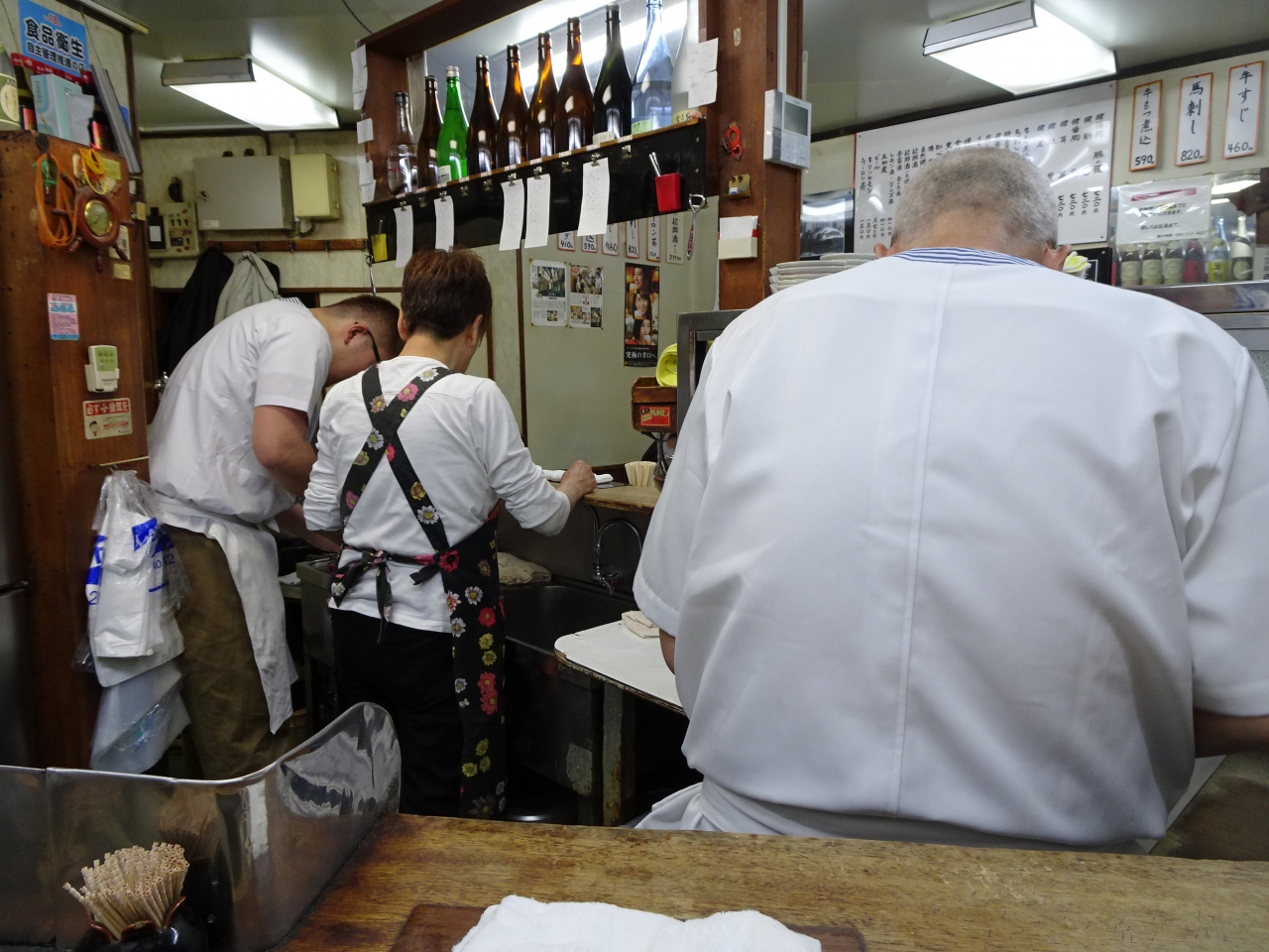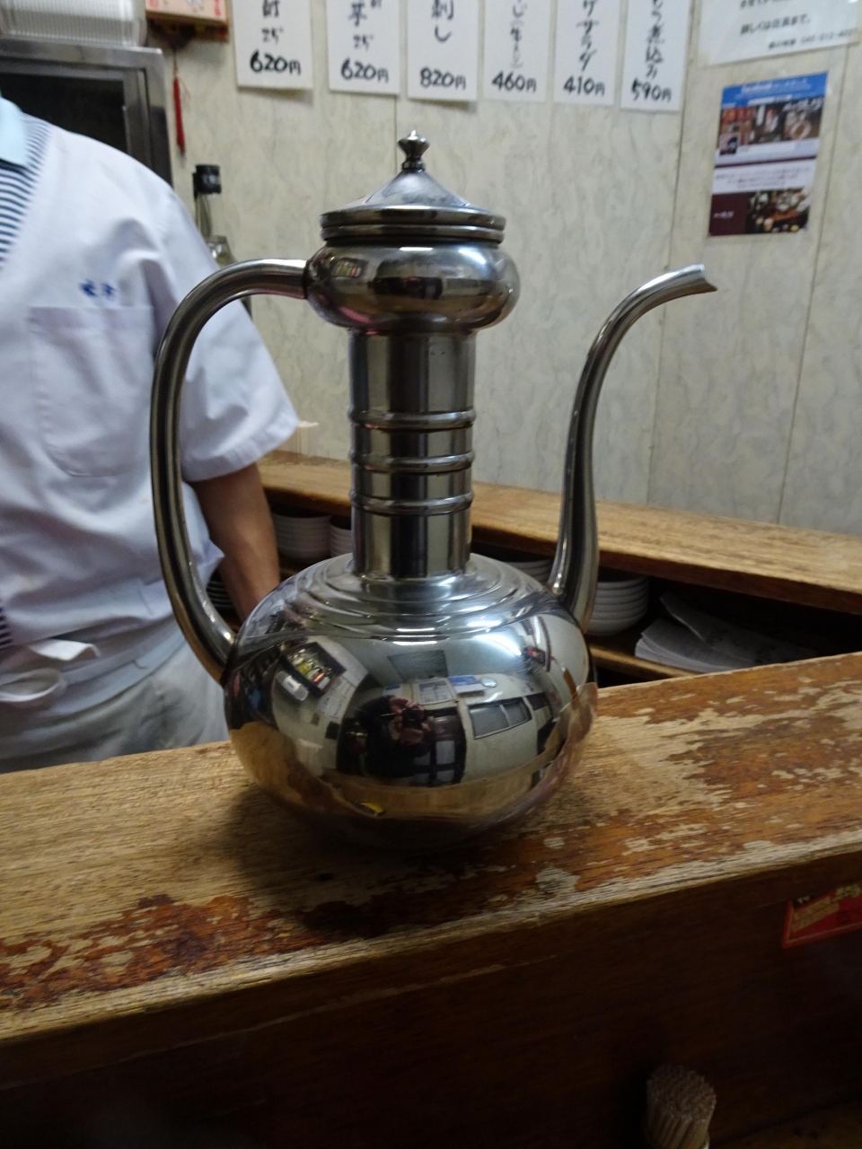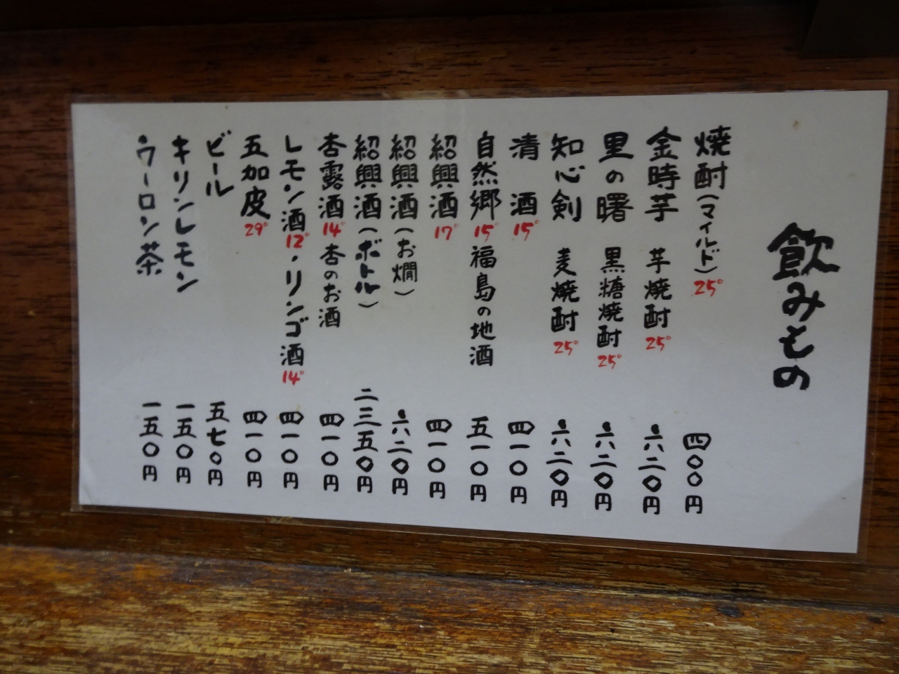 横浜駅西口から近くの狸小路にあります。1階と2階がありますが、2階がメインです。急な階段を上って(「登って」が正しいでしょうか。)2階にいくと厨房を囲むカウンター席とわずかなテーブル席があります。メニューは、豚のモツ(足、耳、尻尾、頭、舌、胃等)があり、腐乳、ラッパ菜等もあります。飲み物はビールやサワー類もありますが、独特な形状の「やかん」と呼ばれる入れ物に入った25度の焼酎を飲んでいる人が多いです。