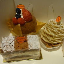 私が気に入ったのはモンブラン。ソバの部分の栗風味と軽やかな生クリームがとても良く合っている、そして和栗甘露煮が1個入っていて、とても美味しいでした。