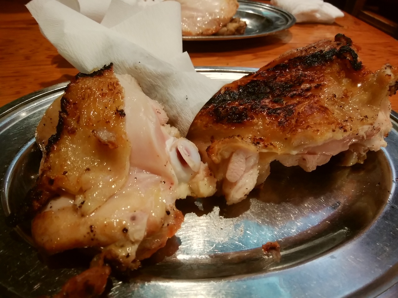 ここのから揚げは、にんにくが効いて抜群に美味しいです。持ち帰り用です。すぐに無くなります。炭火で焼いた鶏モモは香ばしく