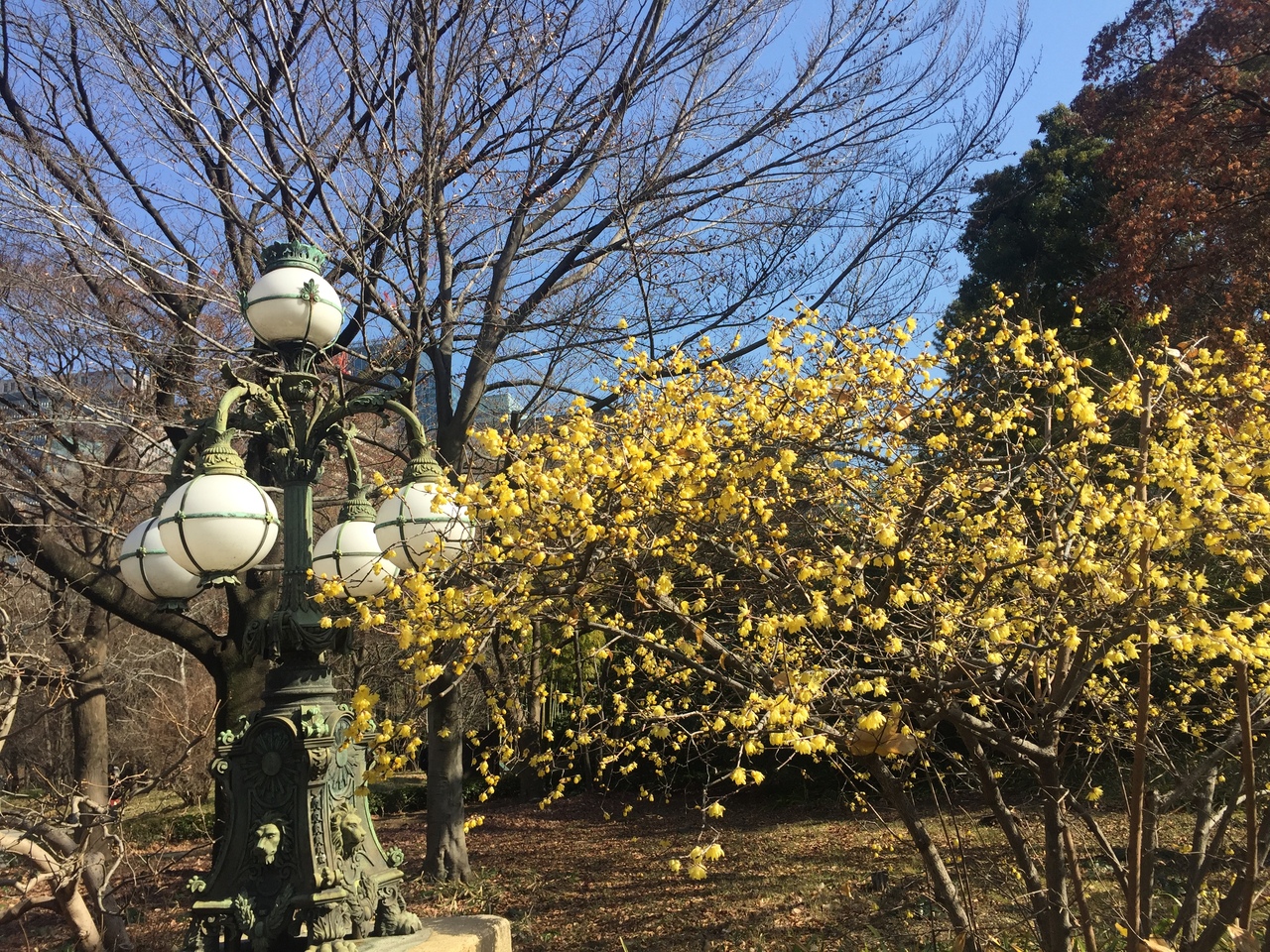 蝋梅も本当に蝋蜜のような花を咲かせていた。