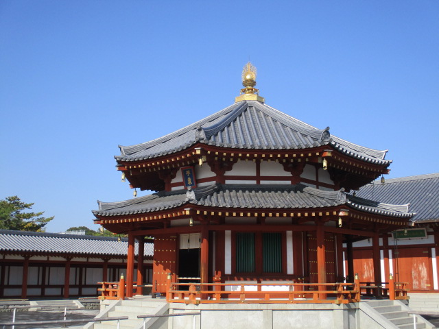 薬師寺は、白鳳伽藍と玄奘三蔵院伽藍に分かれます。その真ん中にそびえるのが玄奘塔です。法相宗の祖で「西遊記」のモデルの玄奘三蔵の遺骨を祀っています。屋根が六角形という珍しい構造で、朱色が鮮やかです。フォルムの美しさは感動ものです。