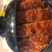 この長野駅に有る明治亭は駒ケ根のお店で、そのソースかつ丼を食べることが出来ます。カツの下にはキャベツが敷いてあるタイプです。