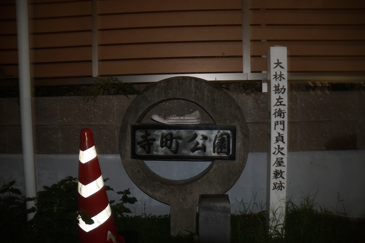 大林勘左衛門貞次屋敷跡は、牛久保市街にある寺町公園という小さな公園の入口通路に「大林勘左衛門貞次屋敷跡」という杭が立っていました。