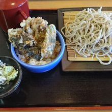 道の駅しもつまに併設されているお蕎麦屋さんです。お昼の時間帯は過ぎていたので、数組先客がいるだけですぐに席に着けました。もりそばは硬さも程よく風味も感じられなかなか美味しかったです。プラス料金でミニ野菜天丼を付けましたが、結構ボリュームがあり天ぷらもサックとしていました。