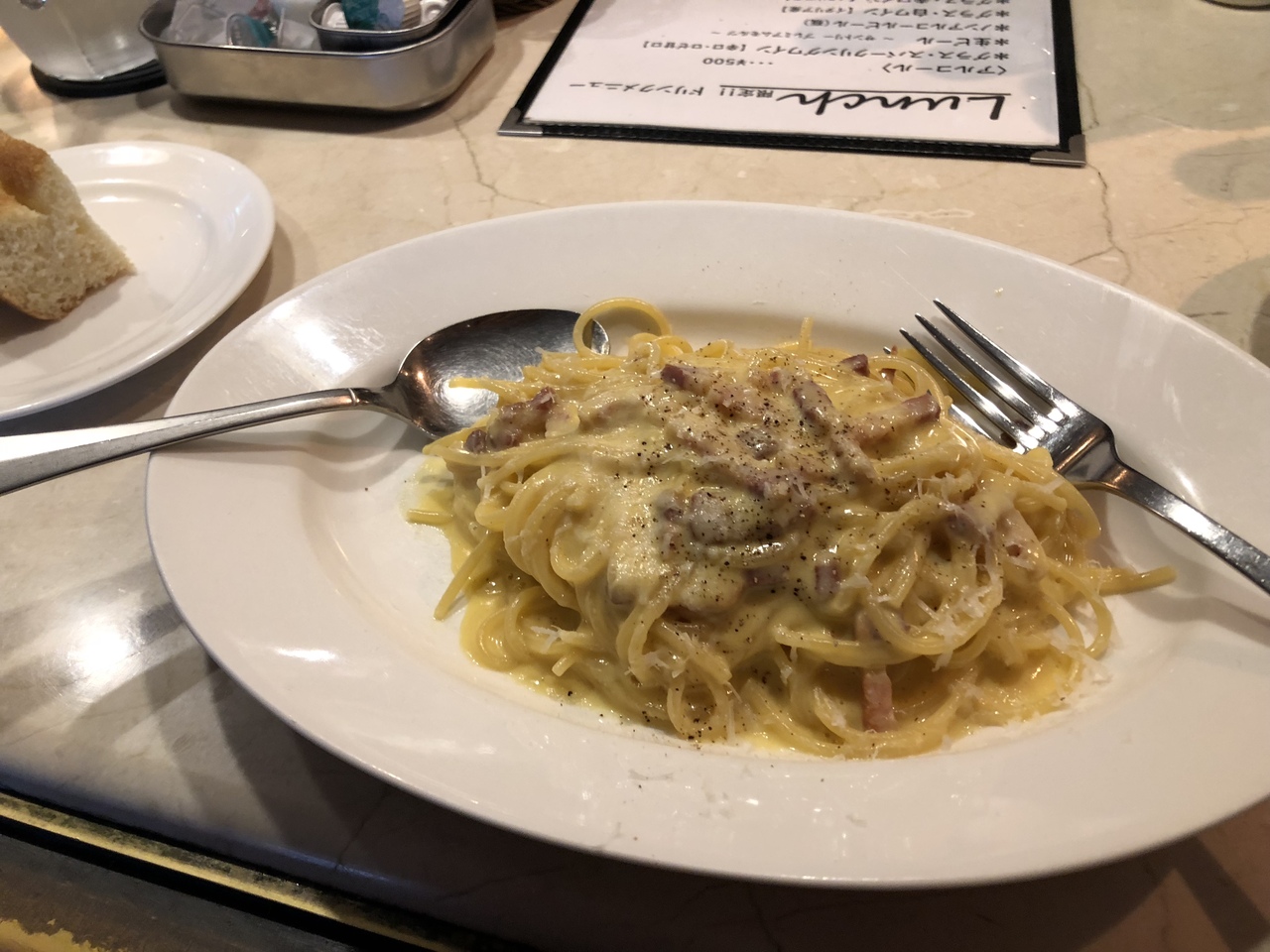 セットのスープは美味しかったのですが、カルボナーラはなかなか味が濃くてしょっぱかったです。。。