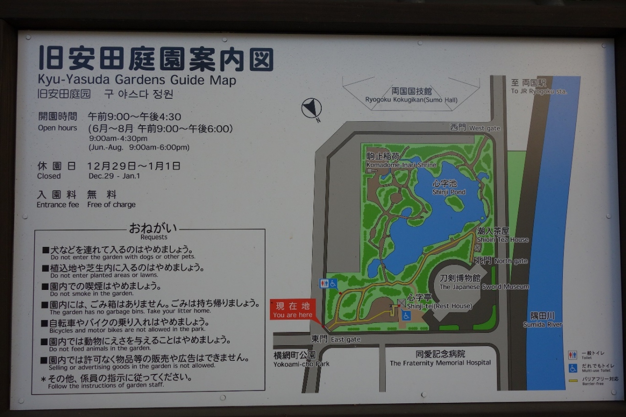 両国エリアを散策中にこちらの庭園へ立ち寄りました。国技館の北側に有る大きな庭園でかつては大名屋敷の庭園だったようです。園内には立派な池が有り、都会にこれだけ大きくて静かな庭園が存在していることに驚きました。