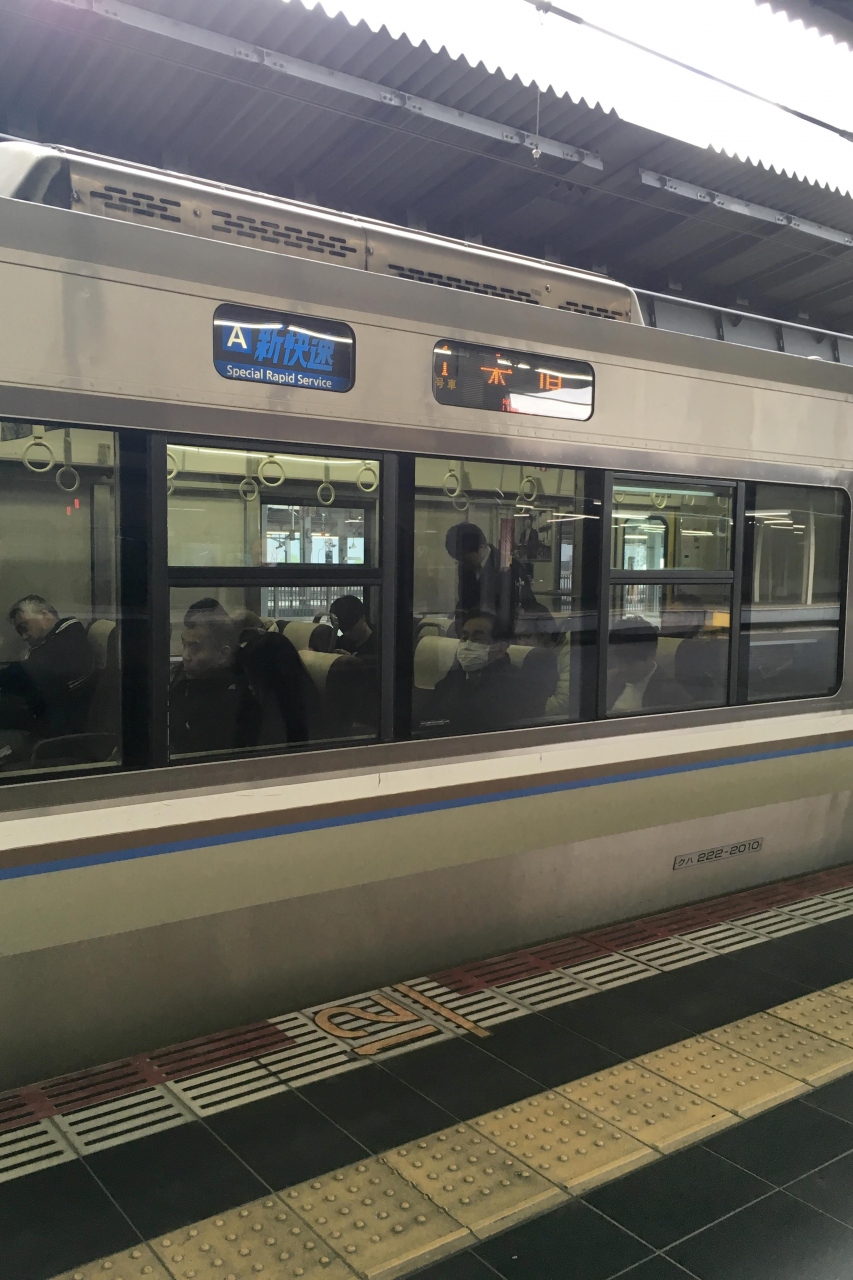 やっぱり便利なJR西日本の新快速。 基本はボックスシートで、座り心地はよいのですが、座れる人数が少ないので、基本的に混雑しています。また、最近ダイヤを変更したのですが、快速電車から新快速への乗り継ぎは非常に悪くなりました。