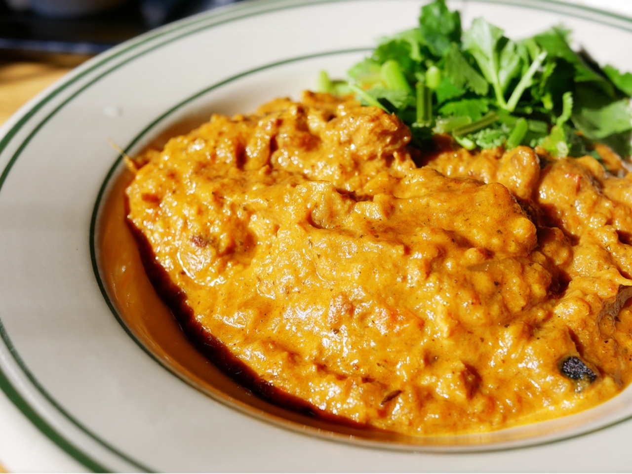 バターチキンと違い、ややドロッとしたキーマに近いタイプのルウで、チキンの固形物は確認出来ないぐらい、良く煮込まれています。