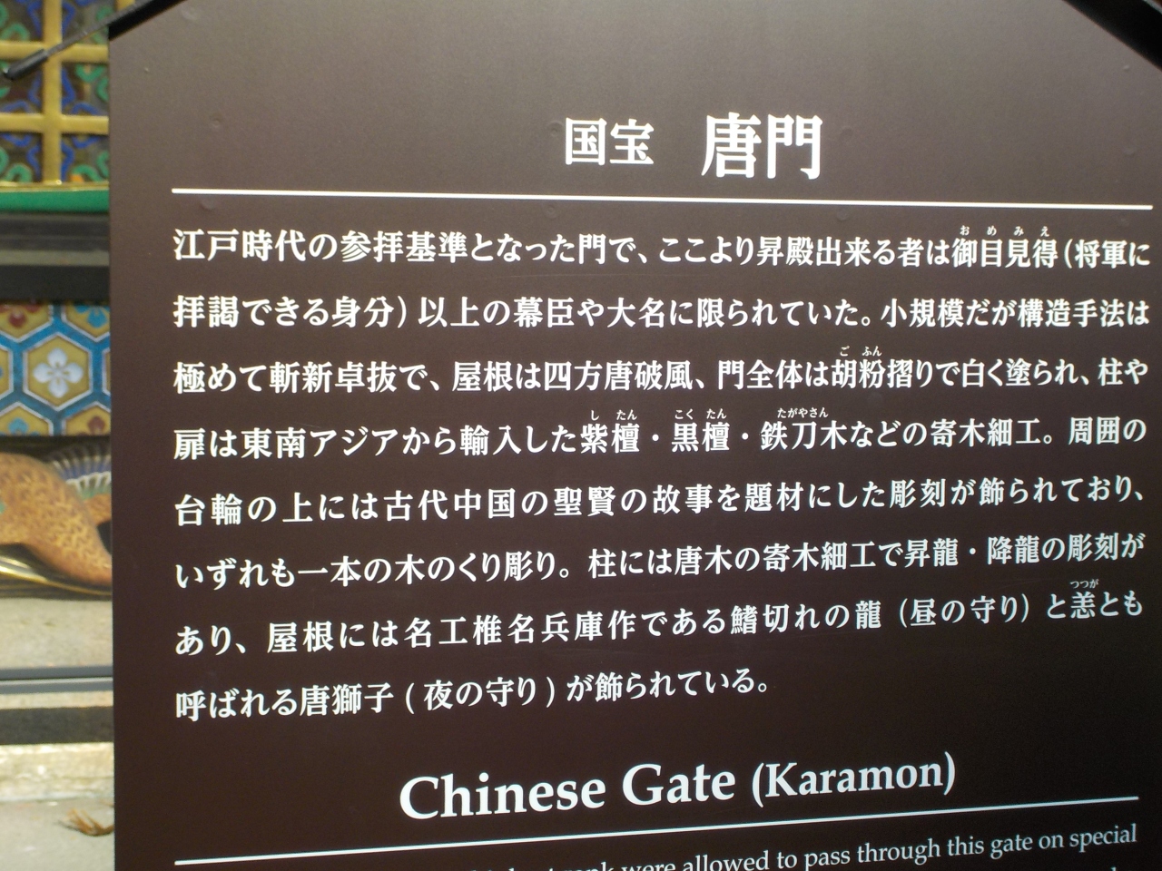 陽明門の奥にある唐門をくぐることができるは、将軍に拝謁できる身分である幕臣や大名に限られていました。