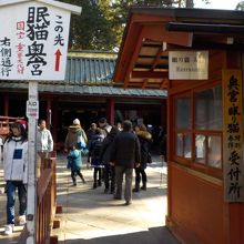 東回廊の奥社入口にこの猫はいます。