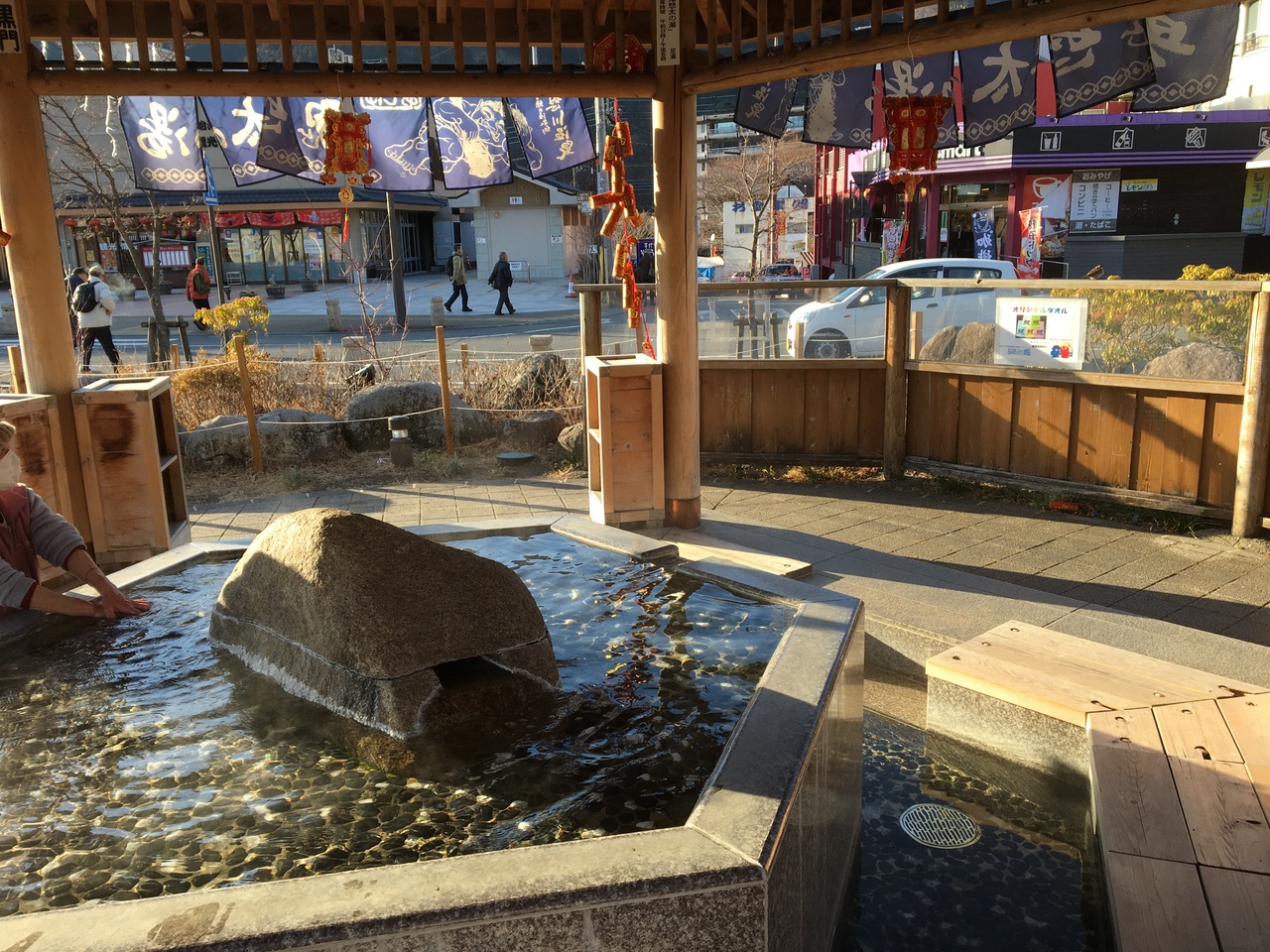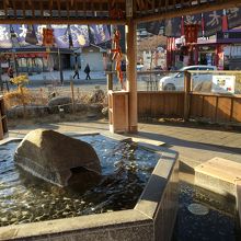 鬼怒川温泉駅の前の広場の一角にある足湯です。駅舎を出てまっすぐ進んで右の方にありました。四角に座るところがありましたが、場所が良いのか、結構人がいました。無料でしたが、タオル等は自分的用意するシステムのようでした。