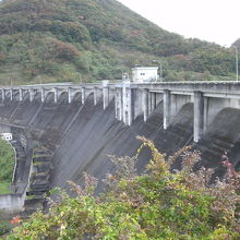 ダム堤体上は車止めがあって車は通れませんが、人の通行が可能です。高さが46mと比較的低いためダム堤体上から下流側を覗いてもそれほど迫力はありませんが、重力式コンクリート式ダムなのに堤体は直線でなく途中で曲がっているのでダムの全体像がよく見えて判りやすく面白かったです。