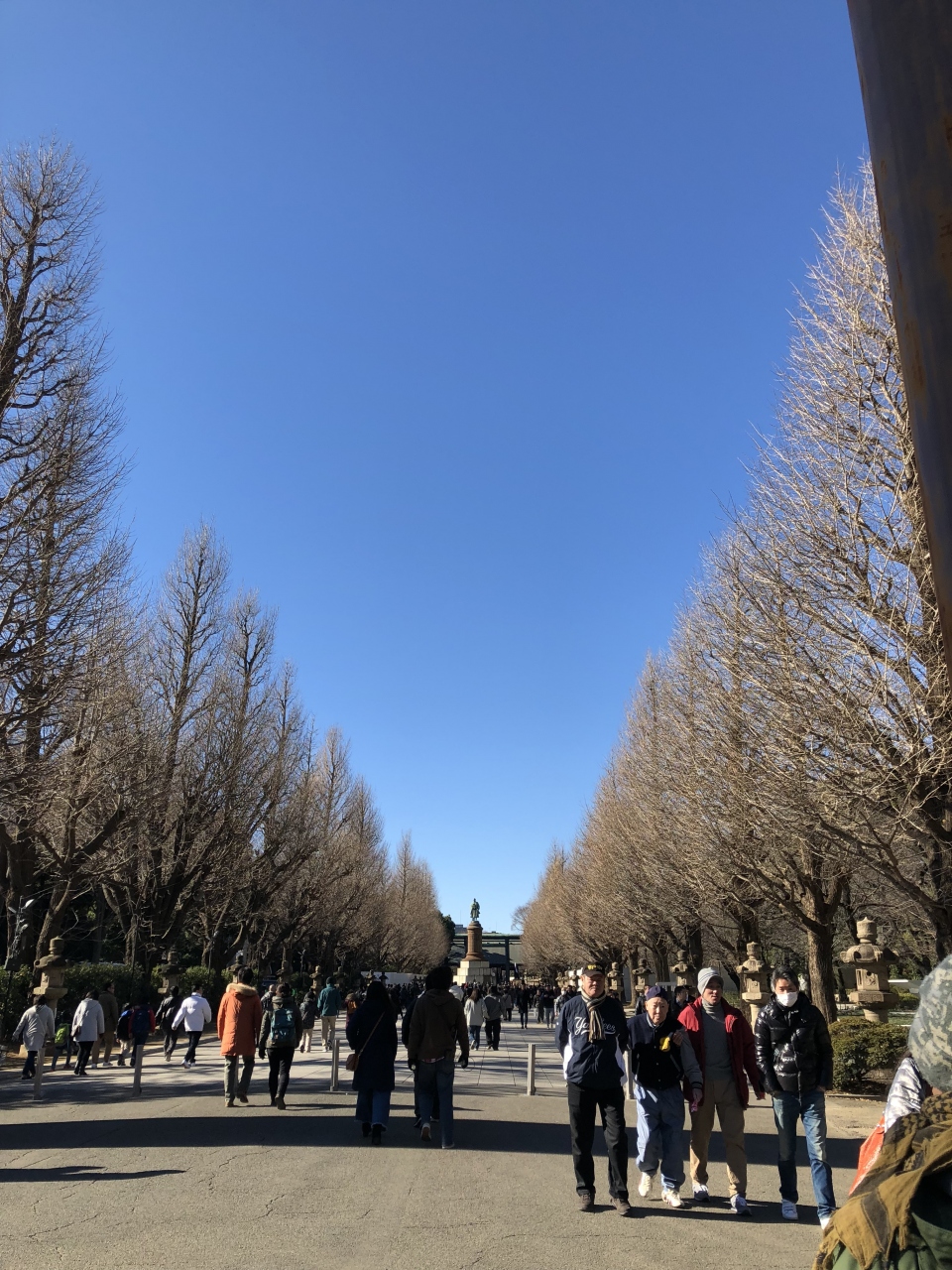 靖国神社の大鳥居の大きさに圧倒されて参道を歩いていると