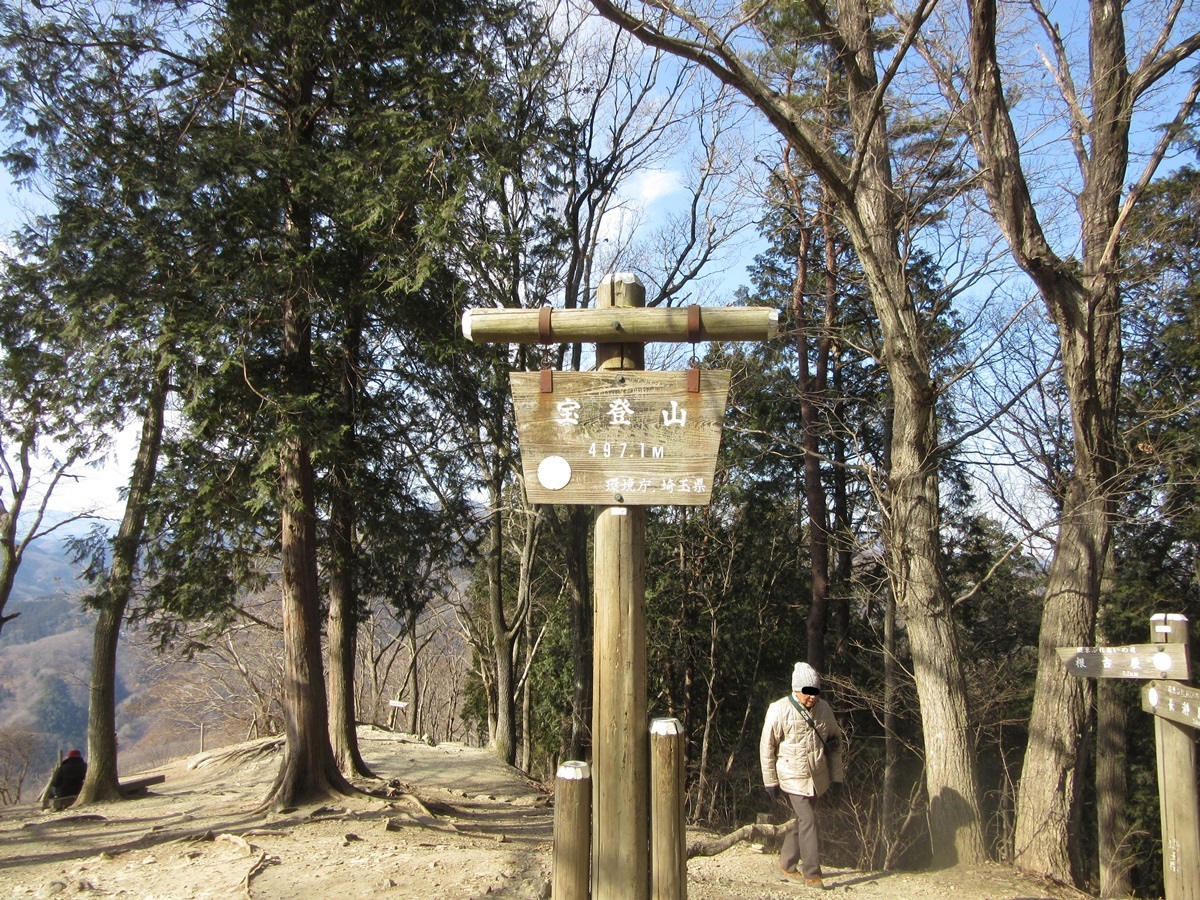 宝登山神社駐車場より少し急な坂を登り、1時間弱蝋梅園に到着しました。5分咲きの蝋梅が迎えてくれました。良い香りを放っていて心が和みます。ちらほらの白梅と福寿草が更に花を添えてくれました。蝋梅園を抜け、宝登山神社奥宮を経由して4分ほどで、宝登山山頂(497.1M)に到着しました。展望は全方開け、西に両神山を始め秩父山系、南に武甲山、その左手前に美ノ山等が見えます。本日のコースは標高差310M,歩行時間も2時間34分と短く、アップダウンも無く、初級中の初級の楽なコースでした。本命の蝋梅も5分咲きでしたが、満足できる花見でした。おまけにマンサク、福寿草も見ることが出来ました。いよいよこれから花の季節になるので、楽しみです