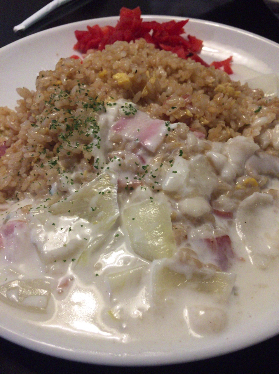 にんにくピラフのホワイトソースがけが一度食べてみたくて行ってみました。ガツンとくるにんにくの香り。もう少しニンニクが弱い方が美味しく感じられるかなーと思いました。あと、かなり油っこかったです。次の日の仕事に差し支えるほどの強烈な匂いに、次回食べるのは絶対週末にしよう、と心に誓いました。