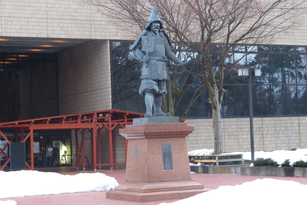 弘前文化センター前に建てられている、弘前藩初代藩主の像です。
